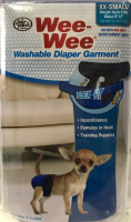 Wee-Wee® Diaper Garment works best when used with disposable Wee-Wee® Diaper Garment Pads. These machine-washable garments have adjustable closures. Great for puppies not yet housebroken, females in season, dogs with excitable urination and incontinence. Available in 6 sizes: